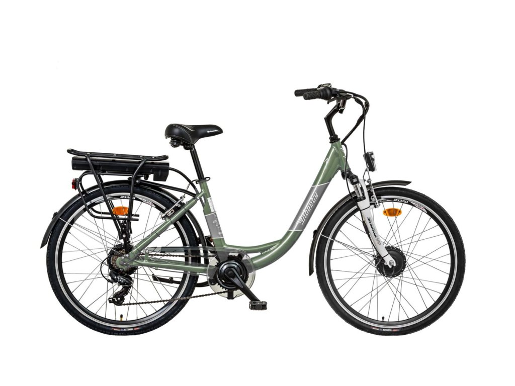 LIBERTY e-VIA je mestský bicykel s elektrickým motorčekom v prednom náboji. Má 6 rýchlostí a na jedno nabitie má dojazd cca 40 až 80 km, samozrejme záleží od terénu, hmotnosti jazdca, jeho podpory aj od nastaveného stupňa podpory, poveternostným podmienkam a podobne. Motor si viete nastaviť na tri stupne podpory, ktoré viete ovládať na riadidlách. Funkcia START-UP asistent umožňuje pohon bicykla do 6km/h bez použitia pedálov, stačí len zapnúť tlačidlo na ovládacom paneli, taktiež pomáha pri tlačení bicykla do strmého kopca. Jazdiť na e-bikoch je veľmi jednoduché stačí otáčať pedálmi smerom vpred na základe čoho pohybový senzor spustí motor podľa nastaveného stupňa podpory a ten dávkuje energiu do motora čím bude jazda oveľa jednoduchšia. Maximálna rýchlosť sa dá nastaviť vhodným stupňom podpory od cca 15km/h až do max.rýchlosti 25km/h v troch stupňoch. V prípade dažďa, alebo snehovej kalamite nie je vhodné bicykel používať. Akumulátor viete nabíjať pomocou dodávanou automatickou nabíjačkou 42V/3A.